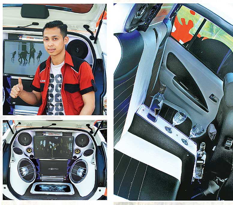 Oiya, semacam surprise ketika tombol switch on lampu plafon ditekan, sebab puluhan lampu LED menyorot serasa dalam bar. Pengalun musik pun diseting maksi oleh Golden Audio Salatiga. Rentetannya mulai Head unit Pioneer, sepasang woofer JBL 12 inch, speaker 3 way belakang dan speaker depan adopsi Pioneer. Semuanya disupport oleh Power JBL dan monoblock Momentum dengan kapasitor Bank Coustic.