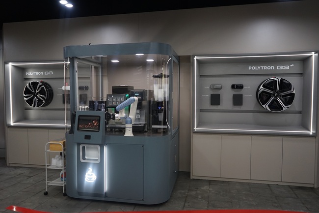 Polytron merancang showroom ini dengan konsep open space yang modern dan nyaman bagi pengunjung. Selain itu, showroom ini juga dilengkapi dengan fasilitas robotic arm coffee machine yang memungkinkan pengunjung menikmati kopi secara otomatis.