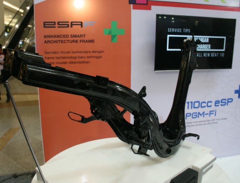 Konteks tersebut tidak lepas dari jenis rangka terbaru tipe esaf frame konsep stamped frame dengan laser welding di bagian subframe. Sedang dibagian main frame mengaplikasi Metal Active Gas (MAG) welding yang relatif kekuatan lebih kuat dibutuhkan dibagjan main frame. “Hasilnya lebih ringan 8 persen dibanding seri sebelumnya yang berimbas lebih enteng di handling sekaligus lebih gesit mengjngat bobot yang turun,” jelas Naim Mudhori, Technical Service &Development PT.MPM.