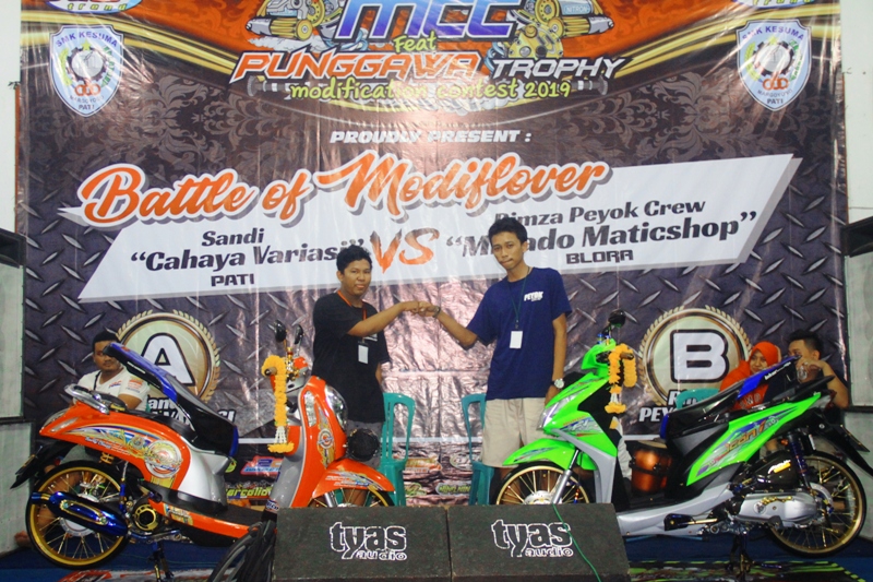 BATTLE OF MODILOVERS. Tarungkan Seru Sandi ‘Cahaya Variasi’ Pati Versus Rimza Peyok Crew ‘Mikado Matic Shop’ Blora