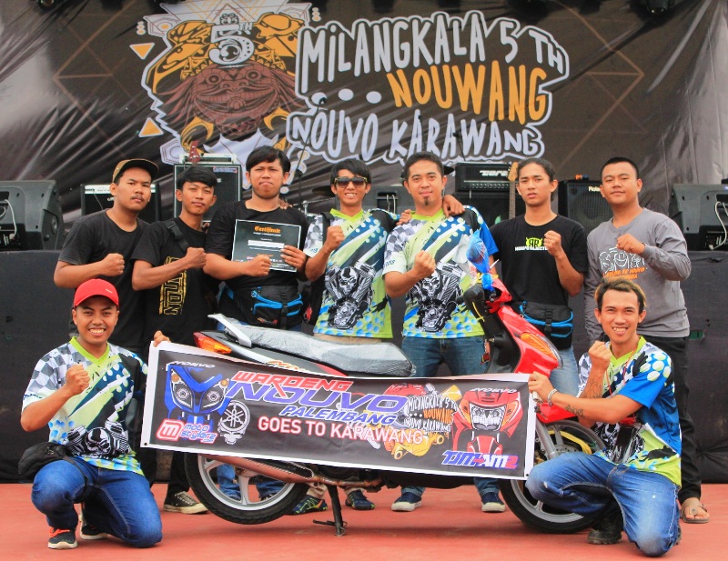Serunya lagi, di puncak acara, kepanitiaan Milangkala Nouwang juga memberikan sebuah door prise spesial berupa satu unit maskot Yamaha Nouvo lele rakitan 2003 yang tampil bak motor Nouvo anyar. Ternyata maskot ini adalah hasil kreasi restorasi oleh Randy Rayendra, yang juga adalah owner RR Dua Putra Motor. Diperebutkan berdasar kupon undian ticketing acara yang sukses menembus angka serbuan lebih dan endingnya dimenangkan oleh Sutoy from klub NAC Jakarta. Happy 5th anniversary Nouwang, semoga makin eksis, solid dan mampu menjadi komuni bikers kebanggaan Karawang Raya. tito monster