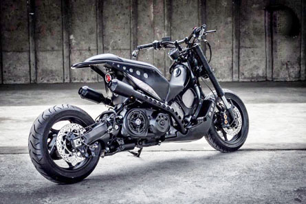 Roland Sands pernah menjahili Yamaha T-Max dengan melucuti sekujur bodi plastiknya yang besar, hasilnya rangka dibaliknya ternyata sangat menginspirasi. Kini rumah modifikasi K-Speed Thailand mengkonsepnya dengan wajah ala Mad Max. Tidak bisa dipungkiri meski tanpa tuas kopling atau persneling, ditangan yang tepat T-Max ini sangat memukau menjadi komuter untuk kelilingan kota.