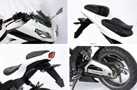 Ternyata doi sepakat merujuk pada dimensi gaya sport fairing dari basis Ninja 250. Namun, bajunya ini ternyata nggak bolt on dari bodi Ninja asli lho, melainkan dicetak manual berbahan fiberglass yang dibentuk menyerupai sport fairing andalan Kawasaki tersebut, digarap total dari moncong depan hingga keburitan.