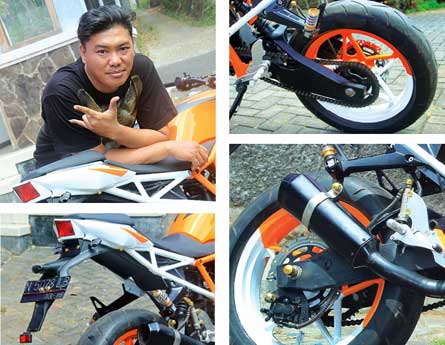 BERPROFESI sebagai seorang chef di sebuah resto papan atas di kota Malang, tak lantas membuat Pras menjalani hari-harinya dengan hanya bergelut bareng peralatan dapur aja. “Kudu ada tantangan lebih rek, makanya kupilih hobi modif berhaluan macho,” timpal pria fromkota Batu ini.