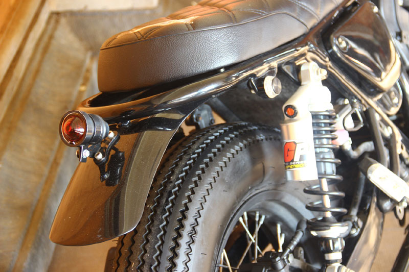 Mendukung performa klasik, tail frame direkonstruksi melingkar profil U. “Kulengkapi juga dengan braket dudukan anyar sepasang pilar sok tabung buritannya, mengusir konstruksi suspensi tunggal orsinya,” tunjuk Roy.