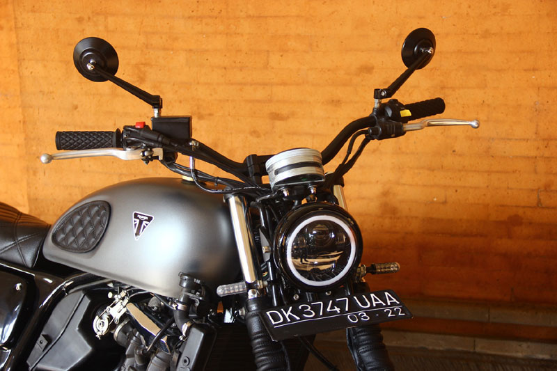 “Kudesain pula jok anyar berbalut kulit sintetis motif klasik semotif side wall fuel tanknya,” imbuh Roy menutup aksi kustomnya dengan menginstal setang baplang fat bar berikut head lamp Day Maker style. tito