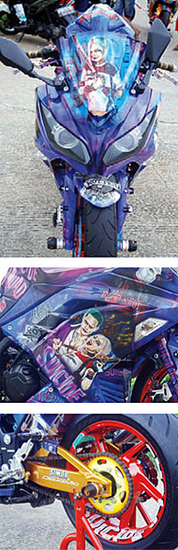 BERBEDA dengan Karin, pemilik Ninja 250 FI asal Kelapa Gading memfokuskan tato geberannya terlihat bak lukisan berjalan. Keistimewaan bukan hanya dipermainan warna tajam bareng cairan Danagloss, melainkan hasil dan kualitas gambar yang diacungi jempol.