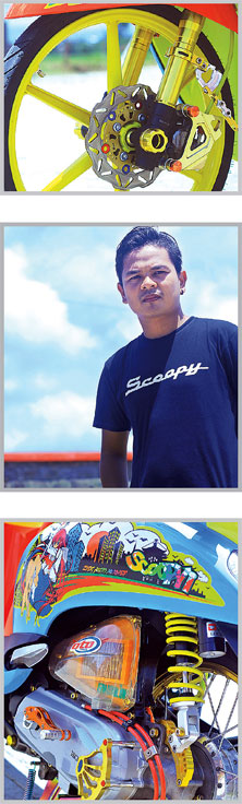 JURAGAN konter hp sekaligus ketan cethol Jember ini punya mainan baru yang bikin doi bersemangat hidup, ”Sering gabung ke club Honda Scoopy Djember (HSD), jadi makin doyan modif, kalau sudah modif jadi lupa segalanya.. he.. he… ,” buka Boby Lavida.