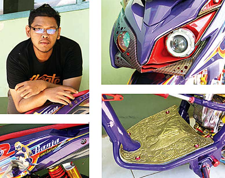 Kemudian, semua diguyur cat warna ungu bertabur efek dan karbon. "Kalo temanya sih, ganja alias ganjaran janda," tutup Sultan Abrar, yang kali ini meminang knalpot custom kidal. n punk