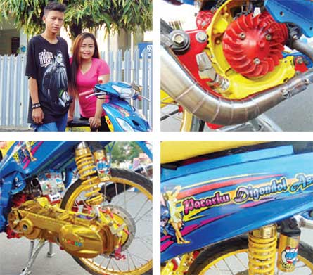 BANYAK cara dilakukan untuk mengungkapkan rasa sayang kepada orang yang dicinta, tak hanya lewat karanga bunga atau barang berharga lainnya sebagai simbol pernyataan kasih sayang. Yogi D’Met, lajang asal Magetan ini punya cara tersendiri, yakni dengan memodifikasi Yamaha Mio-nya bergaya Es Er untuk kado ulang tahun persembahan untuk sang kekasih hati.