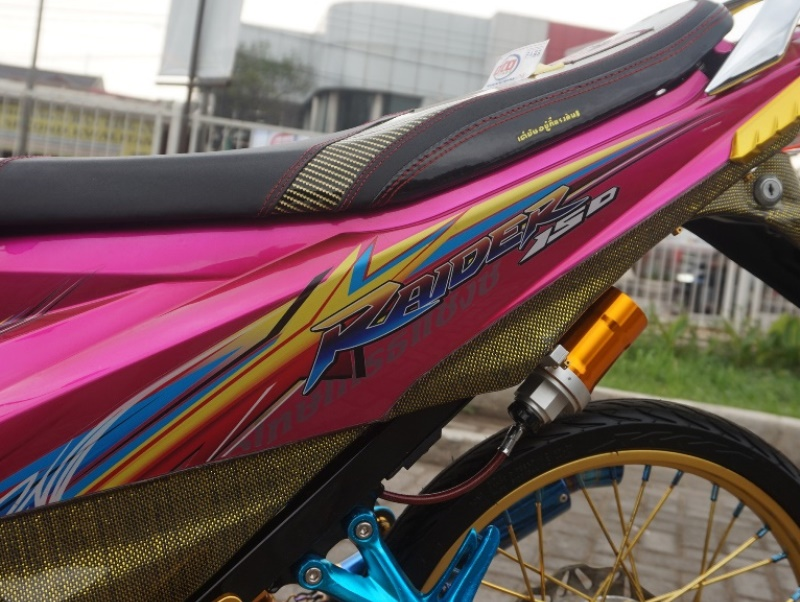 Menghabiskan waktu dua bulanan, kreasi juga menyasar area bodi berpainting cerah dari tumpahan cat Blinken berikut Danagloss sebagai pernisnya serta goresan striping custom yang menawan di beberapa sisinya. Selain itu, beberapa baodi lainnya yang dominan bodi doff ini pun di poles ulang dengan sentuhan laminasi carbon kevlar yang menemani jok bermotif thailook style.