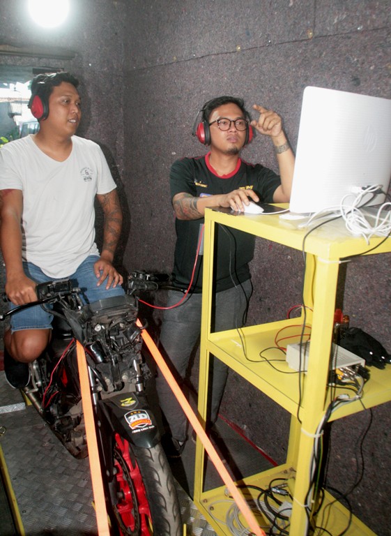 “Akurasi dan kepresisian saat pengerjaan up grade option part mesin sebagai kontribusi speed, makin mudah terdata dan terukur, ”tegas Pak Be. Konsep demikian secara tak langsung, makin melengkapi prasarana penunjang up grade kuda besi dengan teknologi injeksi all brand. Sipnya, secara dimensi juga bisa dipakai untuk keperluan mendyno big bike, denga wheel base lebih pajang.