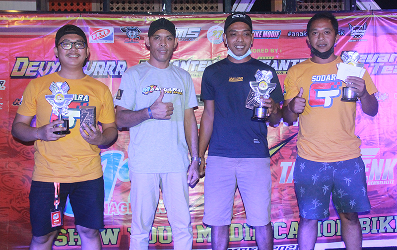 “Over all, atas sukses ini kami haturkan matur suksema untuk seluruh insan modilovers Jawa Bali yang setia berkarya seni modifikasi dan berani berunjuk kemampuan bareng AF Management X Taibantenk Gembel Elite ‘Show Of Your Modification Bike 2021’. Bravo dan Dumogi rahayu sareng sami,” pungkas Ipank Unch Taibantenk yang kali ini spesial menghamburkan puluhan paket produk colour effect made in USA-nya sebagai bagian penghargaan tingginya kepada para jawara terbaik di gelaran AF Management X Taibantenk Gembel Elite ‘Show Of Your Modification Bike 2021’.
