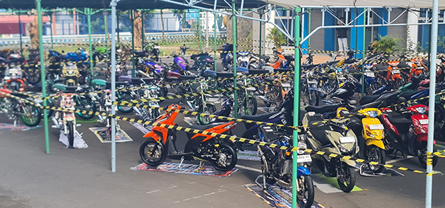 Terdata akurat, venue outdoor gebyar Metamorfosa 17th Oto Contest 2024 di pelataran parkir Gedung Kuliah Terpadu Polines diserbu 150 register yang hadir tak hanya dari seputaran Jawa Tengah dan DIY saja, namun juga hadir maskot-maskot terbaik modilovers dari Bekasi, Bandung, Ciamis, Bojonegoro, Tuban, Lamongan, Blitar, Pasuruan, Jember dan bahkan Palangkaraya, Kalimantan Tengah bareng maskot Ninja RR dan 125Z haluan Restorasi Fashion.