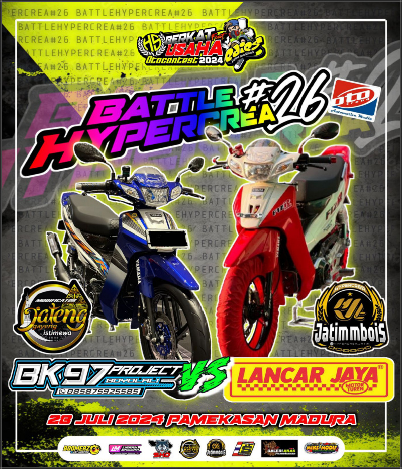 Sekaligus buat menggulirkan lagi kompetisi antar builder atau bengkel modifikasi tahun ini, dihelat juga tajuk Battle of Hypercrea Ototrend yang kali menginjak season ke-26. Battle ini bakal mempertemukan kreator BK97 Project asal Boyolali versus squad Lancar Jaya Team asal Turen Malang yang sama-sama mengandalkan basis Yamaha FIZ-R Series sebagai bahan modifikasi.
