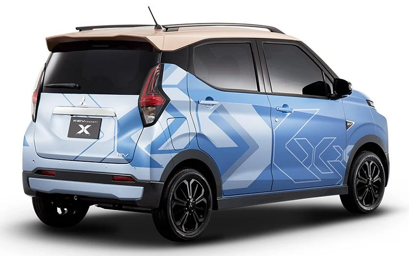 Sisi eksteriornya menampilkan gaya seperti sebuah SUV dengan skema warna two-tone, dengan bodi biru matte yang solid dan atap berwarna tembaga yang mengingatkan pada gulungan motor dari sebuah mobil listrik. Bumper depan, bodi samping, dan pintu bagasi dengan aksen logo berbentuk X, yang melambangkan kombinasi dari tinggi sebuah kei wagon dengan nuansa SUV dan daya tarik kendaraan listrik.