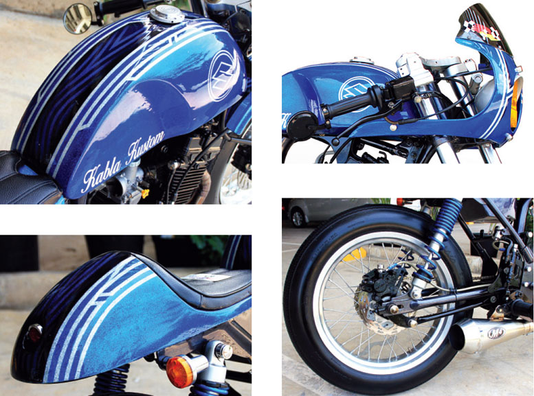 Pastinya wajib bikin dudukan mesin, diikuti frame anyar melalui material pipa gas beritual rapih, disertai pengikat single seat bertongkrongan sekseh, khas bejekan racing era 70 an.