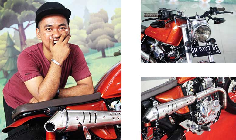 “Aku juga mendesain anyar empang bensinnya bergaya peanuts,” imbuh Rizky seraya menutup aksi bareng pelaburan cat orange metalik mengkover body dan hitam glossy melapis rangka. l tito
