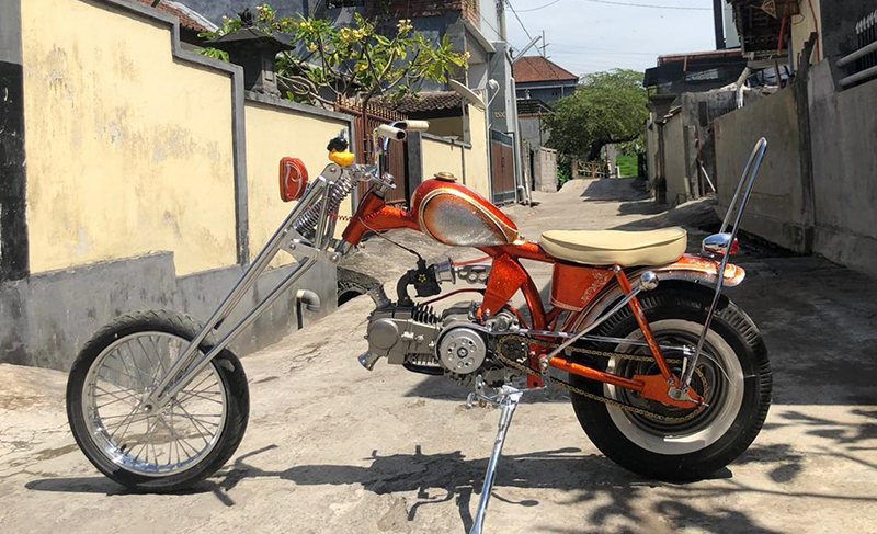 Dan terngehits, kini gaya seventies bonsai makin digandrungi di Bali. Simak saja tongkrongan unik dan nyentrik sesosok Astrea Grand kebanggaan I Putu Darmadi ini. Tampil istimewa berbenang merah seventies style, namun dengan dimensi super imut yang ternyata merupakan buah karya kustom Nicko XPC from Denpasar.