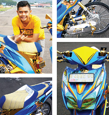 CAT/CLEAR : Blinken PELEK : Axio BAN : Duro SOK DEPAN : Big Bikers SOK BELAKANG : Big Bikers CAKRAM DEPAN : Mofu CAKRAM BELAKANG : Morin KALIPER : Brembo STABILIZER : Scarlet VOLT METER : Koso KNALPOT : Tsukigi MODIFIKATOR : Mandiri 2, Jl.WR.Supratman, Semarang
