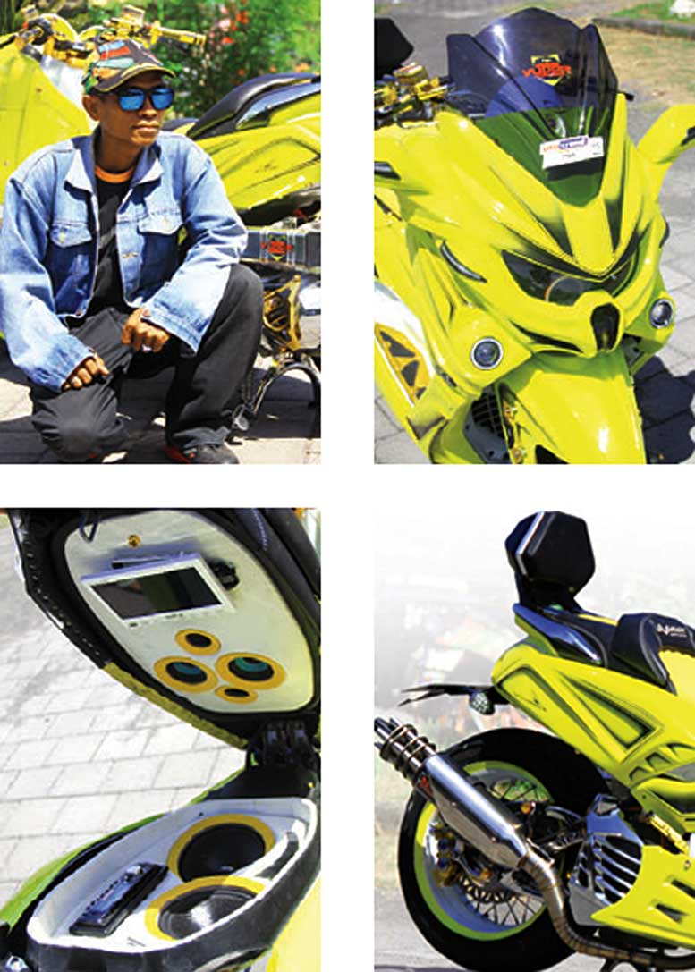"Aku juga menyematkan piranti mini audio di area bagasinya," imbuh pemasang jok berdesain 3D ini. Menutup ak si, all tampilannya direfresh berkelir lemon yellow bareng striping hitamnya. n tito