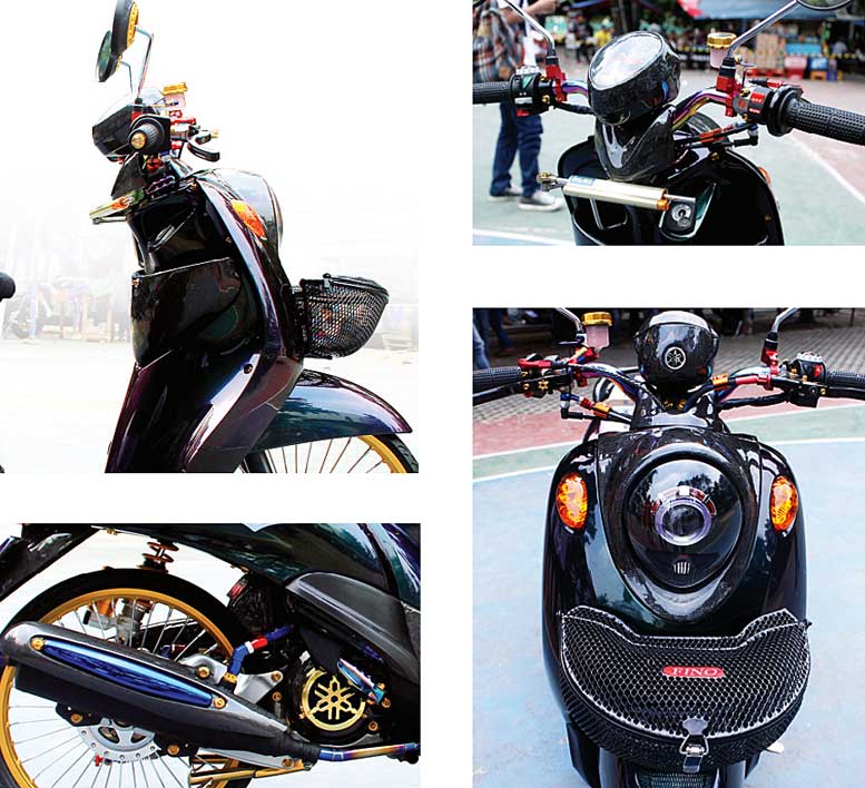 So, warna bunglon via adonan Nippon dipecaya jadi pemaksi universal modifnya, ditemani style tipis jok bersarung Bride dan juga aseso branded (KTC & Brembo) di seputar kemudinya. “Makin klop, dada depannya mengusung variasi keranjang, serta projilamp sebagai closing menarik bejekannya,”celetuk modifikator asal Bogor. l rob/don