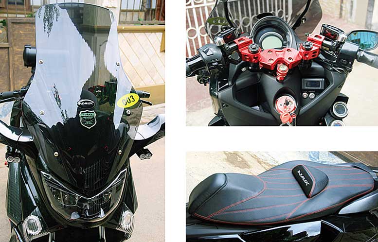 Sosoknya memang tampil lebih elegan, namun kesan garang juga makin kental. Hal tersebut tak lepas dari kolaborasi warna hitam mengkilap dengan merah candy. Varian warna hitam termasuk body add on yang ngehits di kalangan N-Max mania, sedang warna merah Candy mendominasi di sektor kaki-kaki.