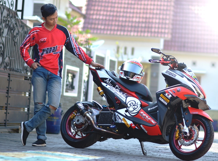 Kali ini, bersama bengkel Maxi Scooter World, Aerox 155 keluaran 2017 dijejali aliran Urban Racing. "Dibuat seperti racing, tetapi tetap nyaman buat harian, apalagi untuk berkendara sehari-hari," alasan Ian Juno.