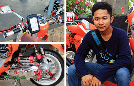 PENGEN tampil unik, Asep Sopandi pilih modif harian a.k.a fashion daily bareng Scoopy berakte 2013. Salah satu hot trend yang kini digemari modilover negeri ini dituangkan cowok asal Jakarta melalui kreativitas paint dan aseso yang diakuinya jadi modal penting dalam mendapatkan paras modis sesuai impiannya.