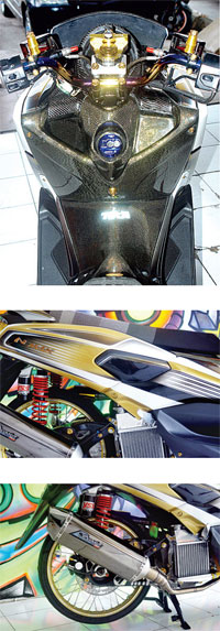 Dipunggawai bro Ricky, sukses merombak tampilan N Max menjadi lebih modif dengan style thailook selera anak gaul. “Aku memang selalu ingin menciptakan inovasi modif, buat mendongkrak bisnis bengkelku. Juga ingin terus mengembangkan dunia modifikas di tanah air,” ungkapnya.