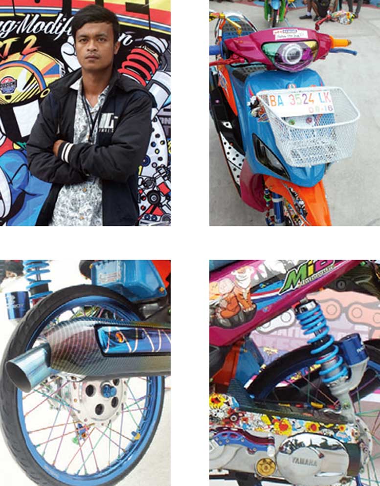 TROMOL: VND, CAKRAM: VND, KALIPER: RCB, SOKBREKER: R/T Speedy & RCB, KNALPOT: Tsukigi, OIL COOLER: BORDESH: Yoshimura, JOK: Bride, STABILIZER: MSX, HANDLE: Tupaknam, SPION: Variasi, MODIFIKATOR: Queen Oxel Matic Shop, Tanah Jua-Bukittinggi (D30C77FA)
