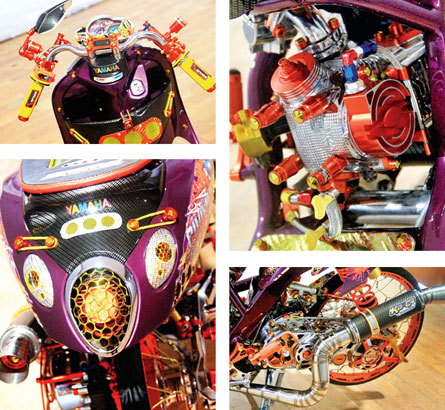 “Detil area mesin ku aplikasi Oil cooler, tutup sentrik, tutup magnet dan cop busi sekaligus koil yang seluruhnya part racing produk branded,” tegas pria muda multi talent ini. l dhmz