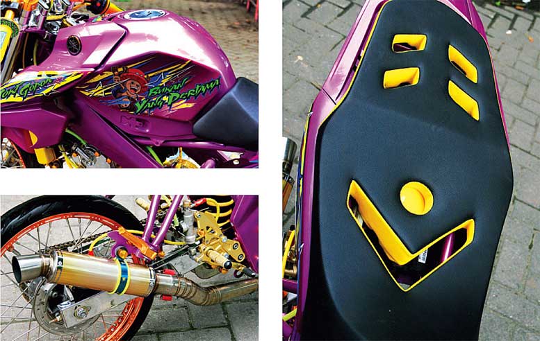 BOTTOM : Custom CNC, TEMA : One piece, KNALPOT : Freeflow, SETANG : Asesoris, FOOT REST : Underbone NUI, BRUSHER : Wantz Airbrush.