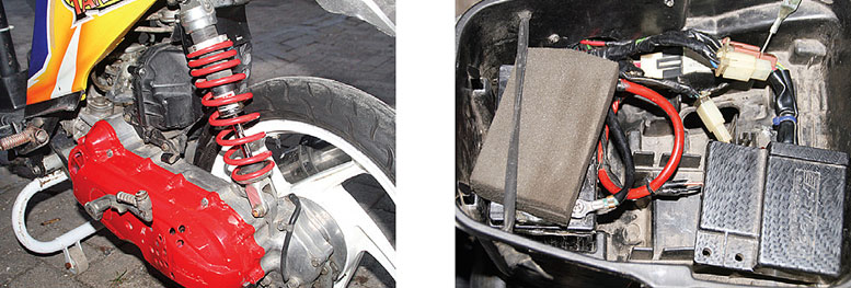 KNALPOT : CLD KATUP : 25 mm & 23 mm ROLLER : 11,5 gram DRIVE-DRIVEN GEAR : 13-43 SOK BELAKANG : YSS WORKSHOP : Inan Racing Speed, Perum Queen Residence C-2, Bangkalan (0822 33 35 7412)