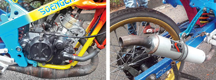 Gigi rasio : 1(30-16), 2(28-19), 3(25-20) dan 4(23-22) MEMBRAN : KX 85 - Orsi 1,5 FINAL GEAR : 13-39 PISTON : Side B KARBU : Keihin 28 mm KNALPOT : KDX