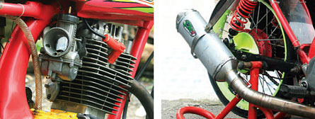Diameter piston menganut 71 mm, dengan begitu kapasitas mesin 160 cc melonjak menjadi 316 cc. konteks tersebut merujuk oversize katup menjadi 34 (In) dan 29(out) yang ditopang oleh pegas katup racing berlabel TK. Selain itu, porting 1,5 mm pada intake dan exhaust dilakukan untuk mengimbangi kapasitas mesin yang telah berubah.Kepiawaiannya pun dituntut dalam custom manual knoken as. Menggunakan pangkas modal mesin pompa air hingga durasi knoken as sesuai yang diinginkannya.